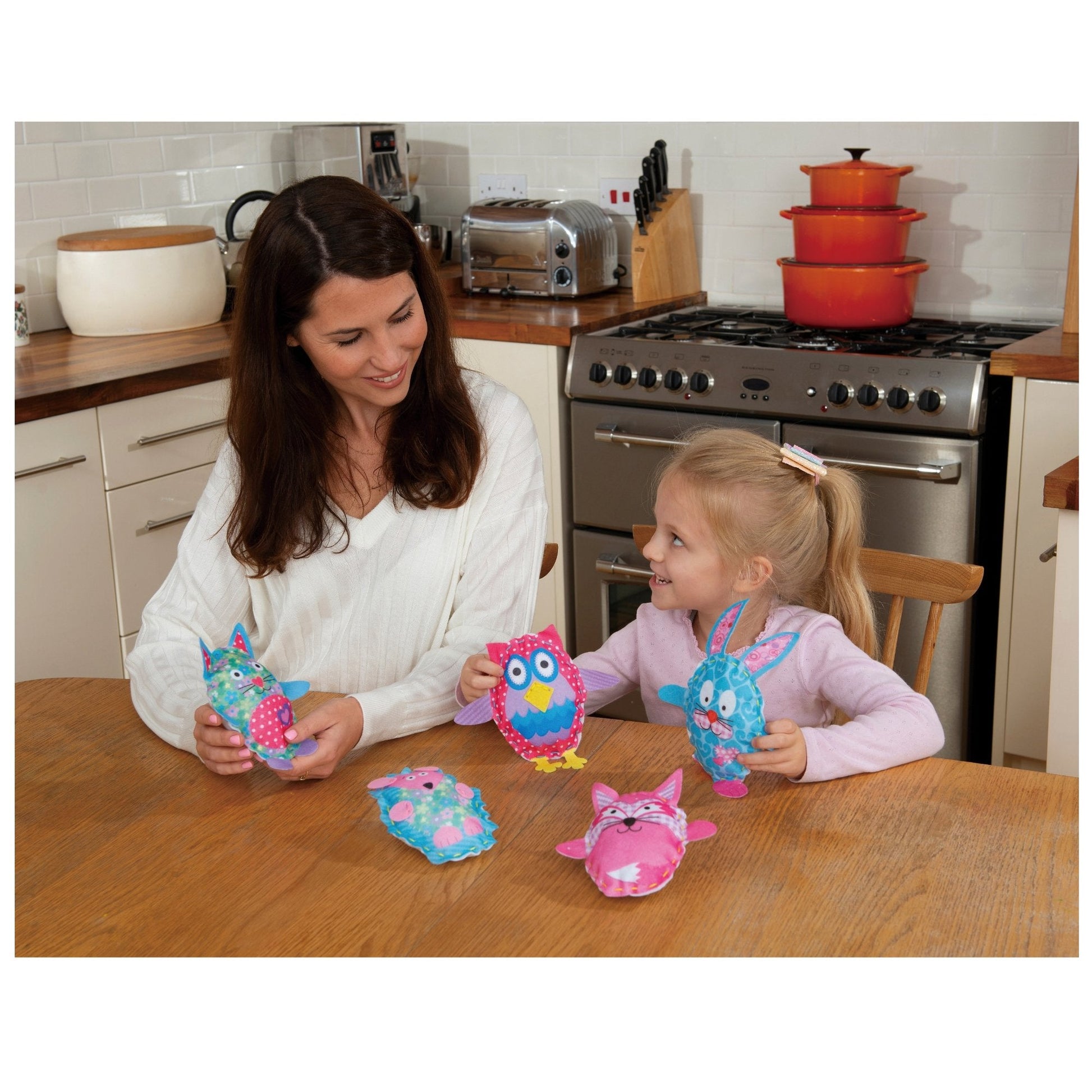 Make 5 cute characters - a fox, owl, hedgehog, rabbit and kitten. Simply stitch the pre-punched felt pieces together with the embroidery thread and add the stuffing. A fun introduction to sewing! Contents: 5 sewing kits with pre-cut printed felt, embroidery thread and plastic bodkin plus stuffing and guide.