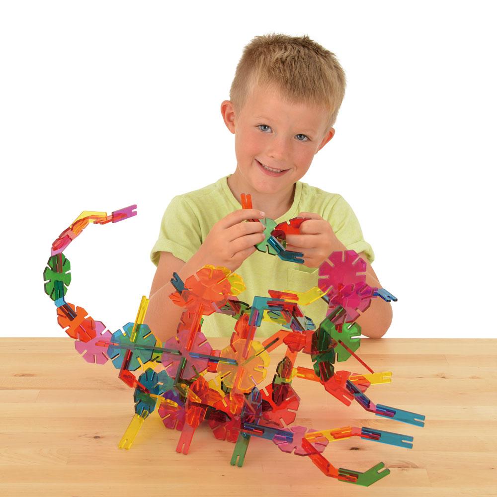 Classic Octons in the original translucent colours combined with 4 Octangle shapes. There are more design opportunities with the four connecting pieces as children develop their creative skills and build more adcanced models. Follow the illustrated models in the guide or design your own with this versatile and creative construction toy. Contents: 168 assorted pieces in 6 translucent colours, including 48 octons, 120 Octangles in 4 different shapes and step by step guide.